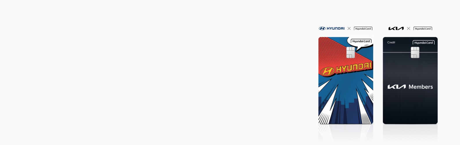 Hyundai Mobility카드, Hyundai Mobility Platinum카드, Hyundai EV카드, GENESIS CARD, Hyundai Mobility카드(상용차), Kia Members 신용카드 Edition2, Kia Members 경차전용카드, Kia Members 전기차 신용카드