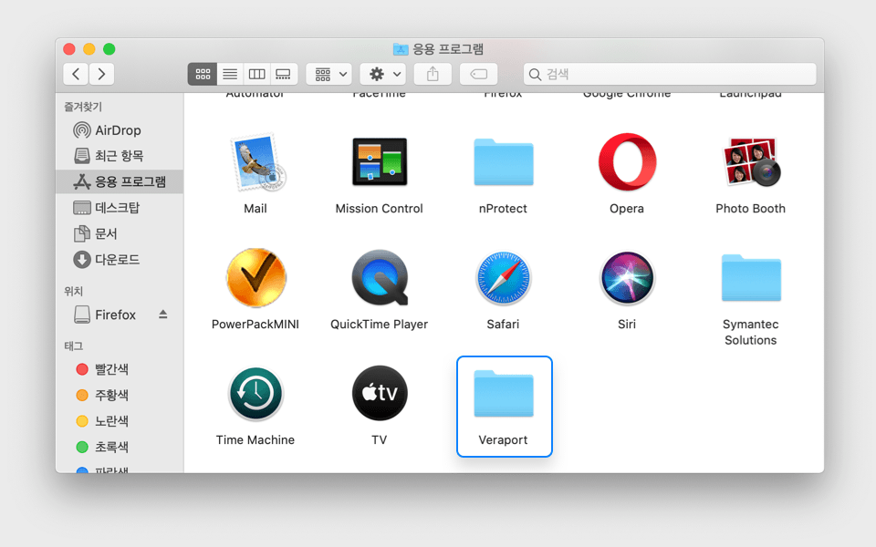 응용프로그램 중 VeraPort를 선택합니다.