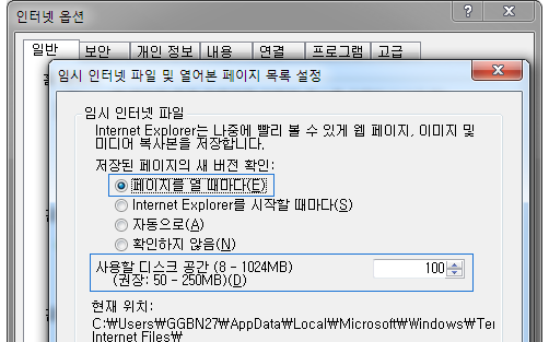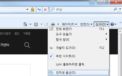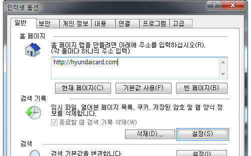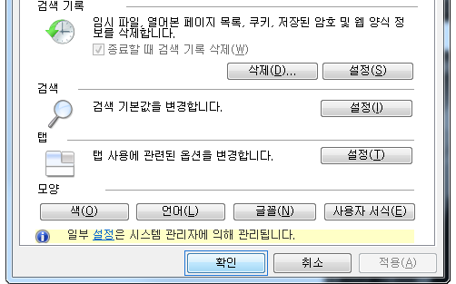 인터넷 익스플로러 설정 변경