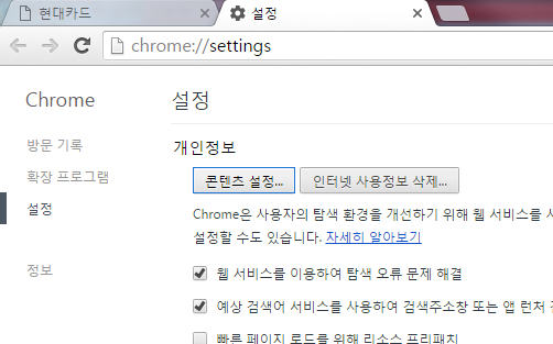 현대카드 웹 보안유지 정책