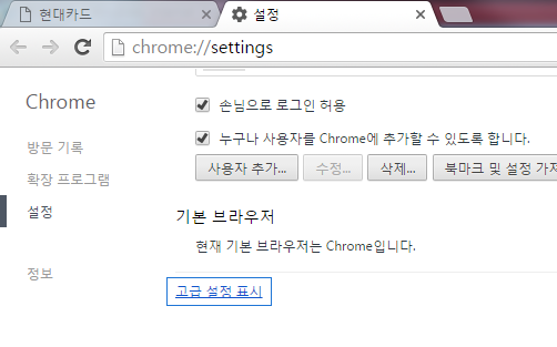 설정 페이지 하단의 [고급 설정 표시]를 선택합니다.