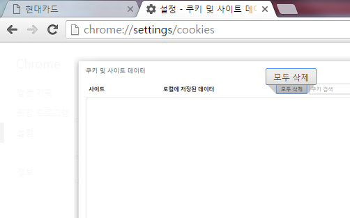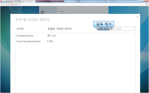 쿠키 및 사이트 데이터 에서 [모두 제거] 버튼을 클릭합니다.