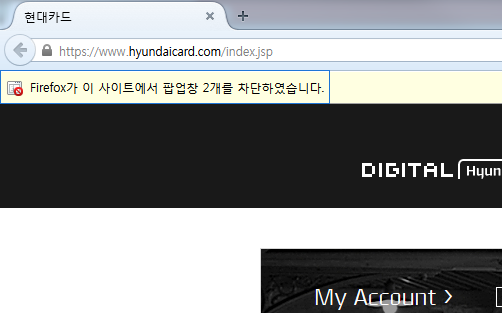 현대카드 홈페이지는 Internet Explorer 7.0 이상(8.0 이상 권장)에 최적화되어 있으며, Windows 98 ~ Windows
