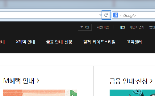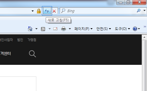 팝업창 허가 후 반드시 브라우저의 [새로고침] 아이콘을 클릭하거나 또는 [Ctrl + R]을 실행합니다.