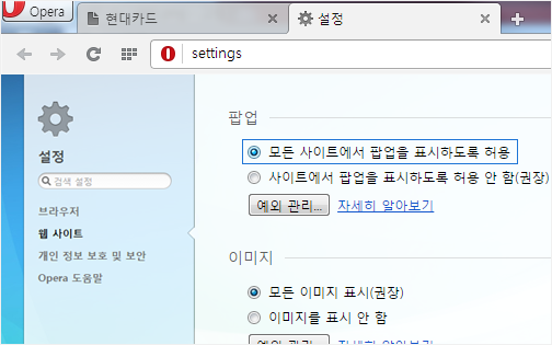 멀티브라우저별 특성에 따라 팝업 창 차단이 기본설정으로 되어 있는 경우 페이지가 확인되지 않을 수 있으니 아래 안내에 따라 설정을 변경하신