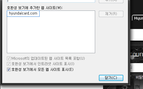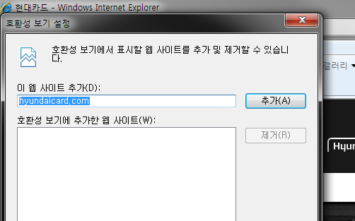 [추가(A)] 버튼을 클릭 후 현대카드 홈페이지 URL를 추가합니다.