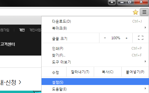 상단의 환경설정 아이콘을 선택 하신 후 [설정(S)]을 클릭합니다.