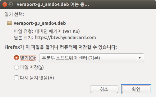 veraport_x.x.x.x_i386.deb 또는 veraport_x.x.x.x_i386.rpm을 클릭 후 설치파일을 실행시켜 프로그램을