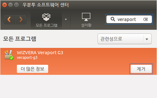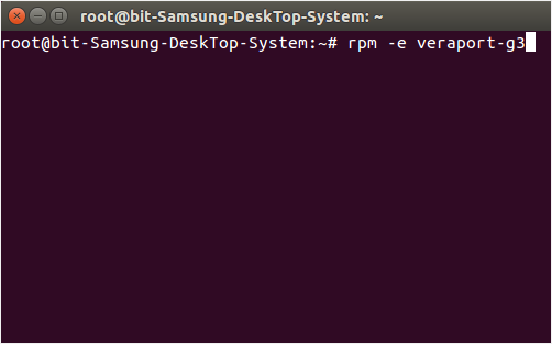 터미널을 실행하시고 root계정으로 전환하신 후 입력창에 rpm -e veraport-g3를 입력하시면 삭제가